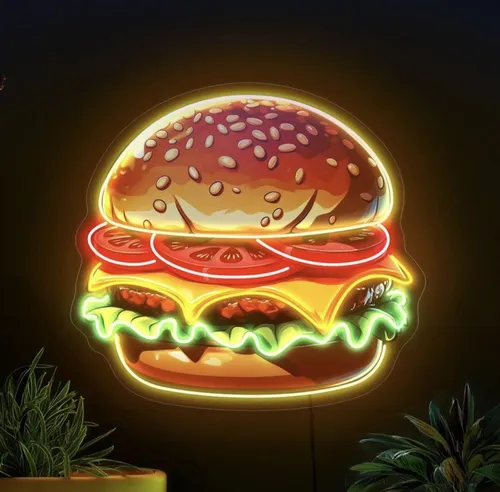 فوتو نیون برگر مناسب فست فودی سایز 30در40