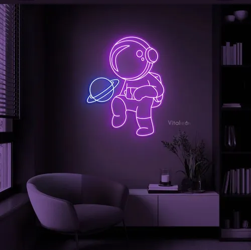 نیون دیواری طرح فضانورد مناسب دکور اتاق سایز 40در50