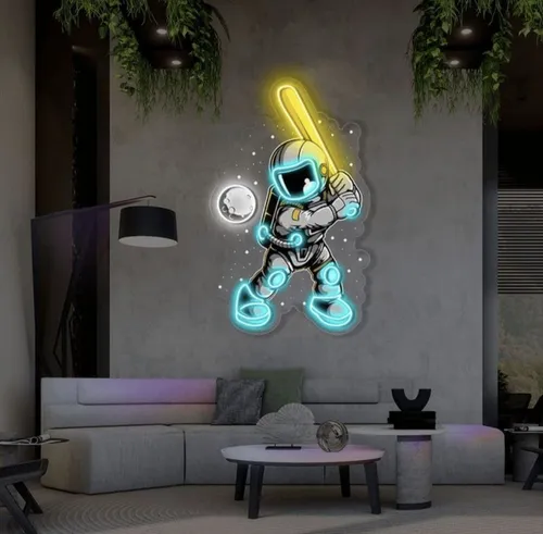 فوتو نیون فضانورد مناسب دکور اتاق و گیمینگ سایز 40در50